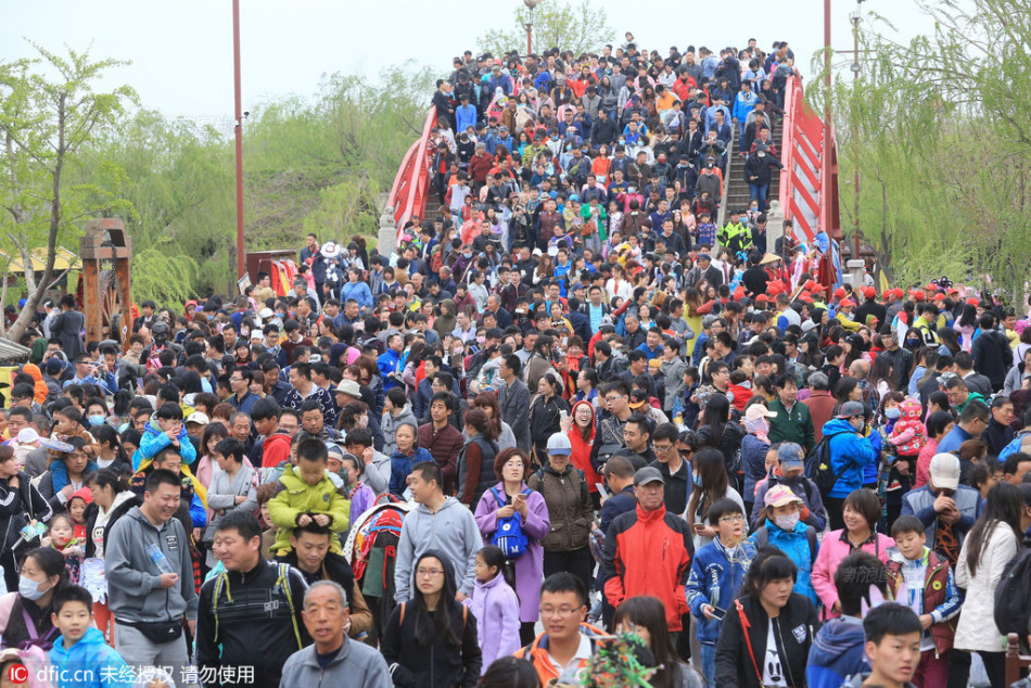 2016年4月2日,清明小长假第一日。在山东泰安,泰山景区迎来清明小长假客流高峰,景区人山人海,众多游客和市民如潮水般涌入景区,赏春踏青。