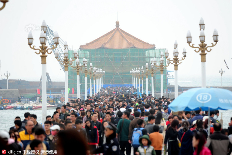 2016年4月3日,山东省青岛栈桥风景区游人如织。清明小长假期间,海滨城市青岛迎来数十万看海游客,各海滨景区游人爆棚,旅游经济火热。