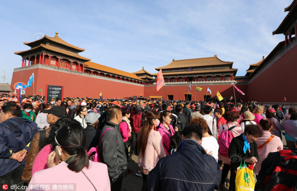 2016年4月2日,清明小长假第一天,来自国内外众多游客来到来故宫博物院,放眼望去,流潮动呈现“人海”景观。