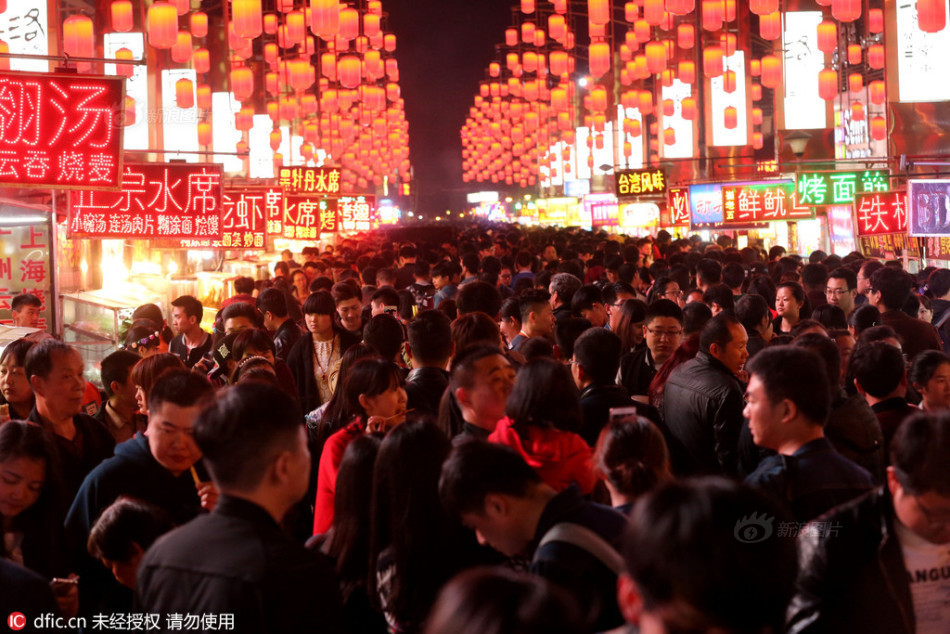 2016年4月3日,河南省洛阳市老城区十字街夜市爆棚,来自全国游客看老城夜色品当地小吃,当晚有数万名游客。