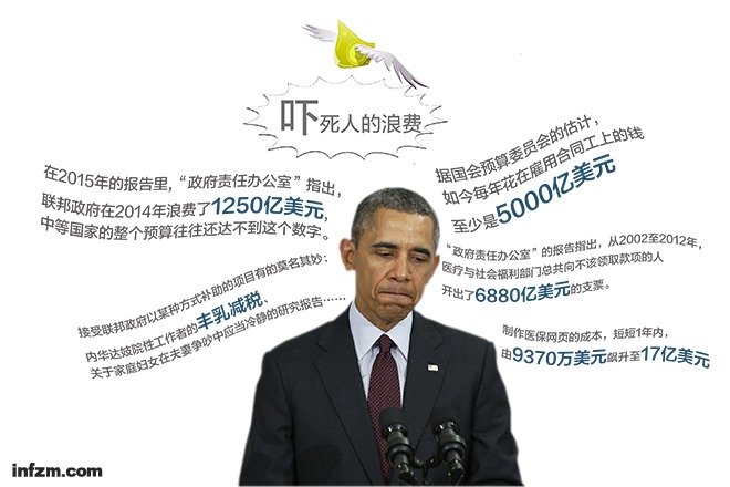 奥巴马医改网页仅仅是一个项目,再浪费也有限。而经年设立的各种政府部门,一旦成立,就很难取消。里根总统曾说:“政府项目一旦设立就不会消失。事实上,我们在地球上能看到的最接近永生不死的事物就是政府部门。”