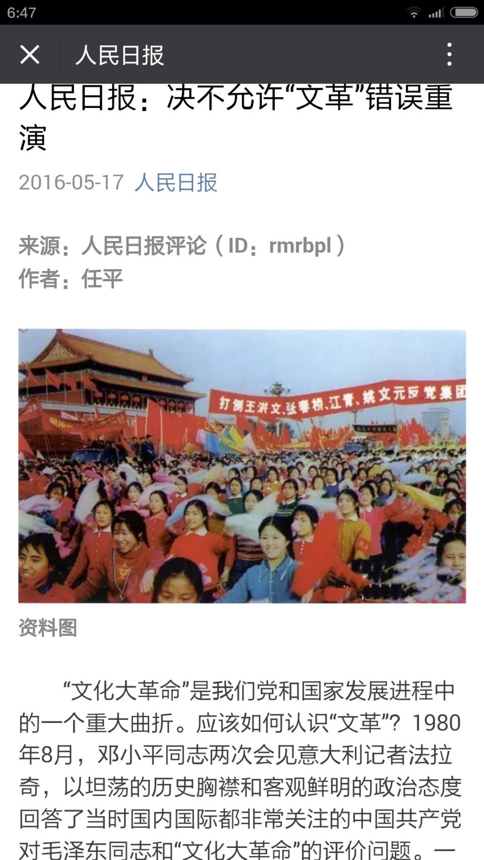 人民日报:决不允许“文革”错误重演
