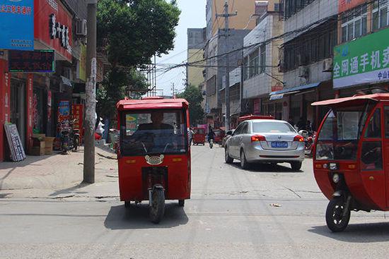 杨守法在镇平县城跑三轮车拉客,每天下午1点到6点出车,他能收入二三十元,"保证第二天有吃的"。