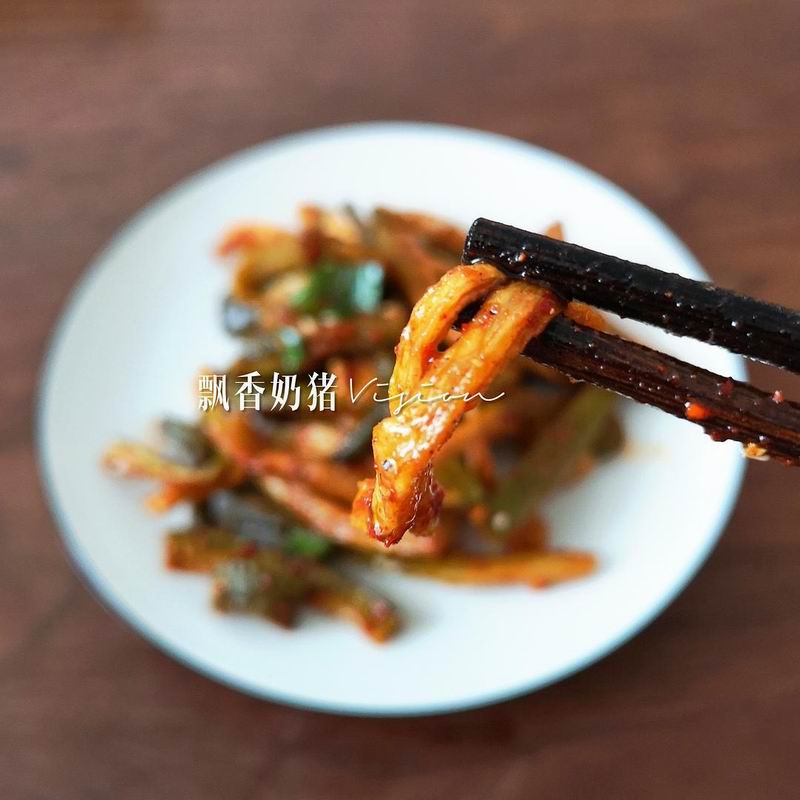 注意:有的朋友可能会问,能不能前一晚拌好放冰箱,第二天再吃。这当然是可以的。不过这种小菜,我不建议放太久。虽然这不是那种传统的腌咸菜,但也不建议放太长时间。我下午四点多拌好味道,等到六点晚饭的时候吃,比较入味,很好吃。