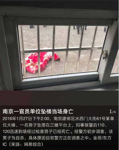 我就呵呵了,这媒体用词还没有我们这些万恶的政府人员用得准,事情都没有调查,高坠原因也没查清,能说是“自杀”?最多只能说排除他杀可能好伐!