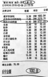 15日上午,浙江的王女士反映,2月9日晚,陈先生与店家发生争执时,她正在北岸野生渔村二楼就餐,一行19人(不包括导游和司机)点了30多斤鱼。一结账懵了,竟要15735元。王女士一行也点了店家推荐的名贵野生鳇鱼,并且是鳇鱼头,每斤498元。仅这一份鱼头就花了近8000元。