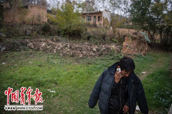 2015年10月29日,甘肃省天水市甘谷县古坡乡魏家坪村,41岁的魏祥祥正在接父亲的电话,由于至今还孑然一身,好多活儿父母都安排他去做。魏祥祥家里7个兄弟,他排行第七,哥哥们都结婚了,因为家里实在没钱了,魏祥祥单身至今。本报记者李隽辉/摄