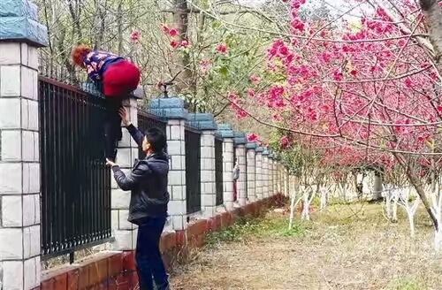 近日,桂林监狱英才小区一大片美丽的桃花林吸引不少游人前来观赏。有人乱扔垃圾、折花让小区管理方不堪其扰,于2月25日起谢绝游客入园赏花。不过,有不少游人为了赏桃花,不惜翻越围墙溜进去。有网友调侃说,“有人想越狱,却有人千方百计爬进监狱”。