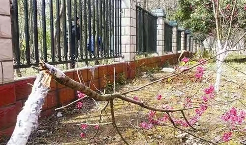 现场民警向记者介绍,小区于2006年种植桃树,约50亩,往年来看花的人并不多。今年2月中旬,桃花开后,前来看花的人突然多了起来。2月20日,进入小区赏花的有上万人次,人太多了,管都管不过来。一些游客乱丢垃圾、折断花枝,一些人为了拍摄效果摇树让花瓣飘落。游人走后,他们还得请人打扫卫生。监狱领导决定从2月25日起,谢绝游人进入参观。但每天仍旧有很多人慕名而来,监狱只好安排人员在门外值勤维持秩序,只给家属和员工签字担保的人员进入。但不断有游人爬围墙进来,他们也只能劝阻和批评教育,又不好采取其他强制措施。桃花好看,却给监狱带来美丽的烦恼。