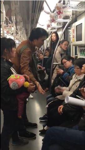 日前,有网友在微博上传了一段摄于上海地铁2号线车厢内的视频,画面中一对带着孩子在车厢内乞讨,一位穿着白色外套、戴眼镜的女乘客用手机记录,引起乞讨者的不满,双发开始争执,发生了以下这段对话。