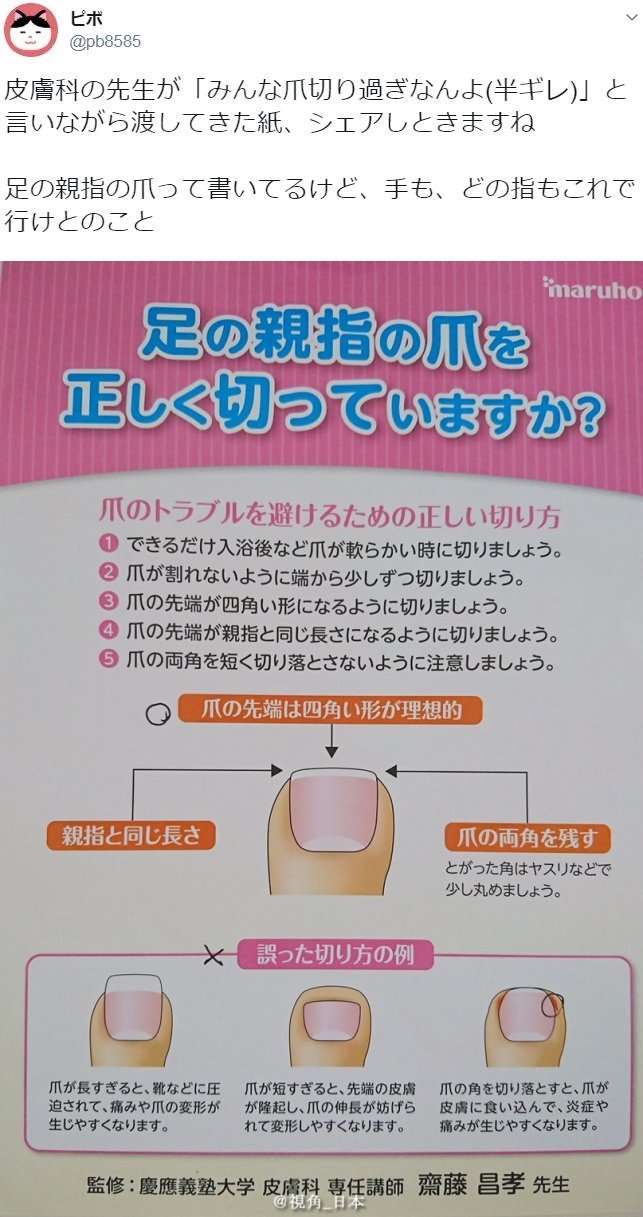 @视角_日本:生活:大脚趾指甲的正确剪法。 1、在洗澡后等指甲软的时候剪。2、避免指甲裂开,从边缘一点点剪。3、指甲前端呈四边形。4、长度和脚趾一样长。5、两端的角不要剪掉。下方3种是错误剪法。