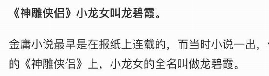金庸武侠人名的真正出处:小龙女原名龙碧霞?