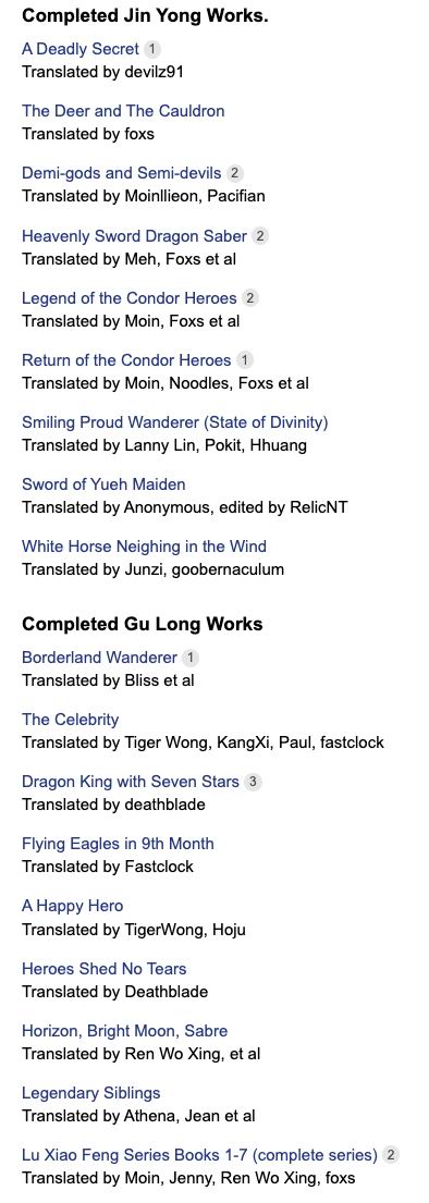 但最专业的当属武侠论坛的讨论,?这里甚至有人完成了很多金庸古龙作品的翻译。