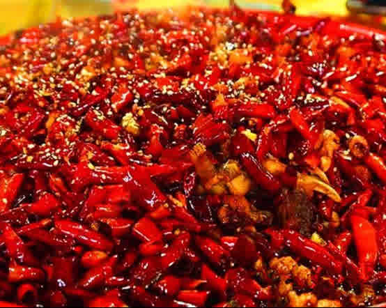 老陈头说,曹阿鸟是何等人,他自有大计较,也就是现在所说的大棋党。他从印度商人那里得到了一种神秘的辣椒,辣度惊人,远胜过当时川渝地区流行的粉红辣椒和灯笼椒。曹阿鸟决定用这种辣椒来做一道菜。他把鸡腿肉切丁同晒干的辣椒爆炒,炒出的鸡丁在刚入口时香气诱人而辣味不显,让人垂涎三尺不忍停箸,越吃越上瘾,等到发现舌头都被辣得如千针齐扎,已为时晚矣,惟有喝冰可乐可以缓解,但当时没有。没错,曹阿鸟就是著名的歌乐山辣子鸡丁创始人。