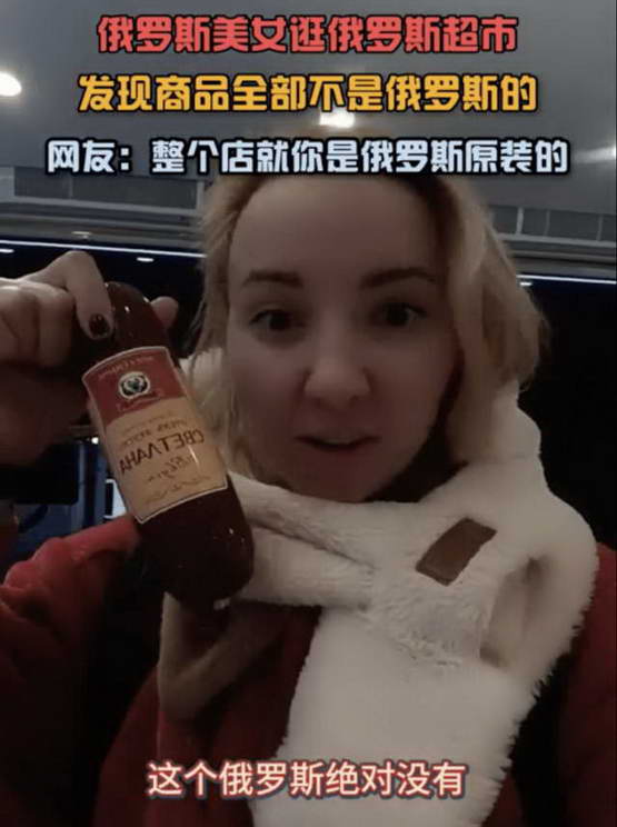 一位俄罗斯博主去探店,发现她完全没见过店里卖的那些商品,网友调侃说,整家店只有她是 “纯俄产”。
