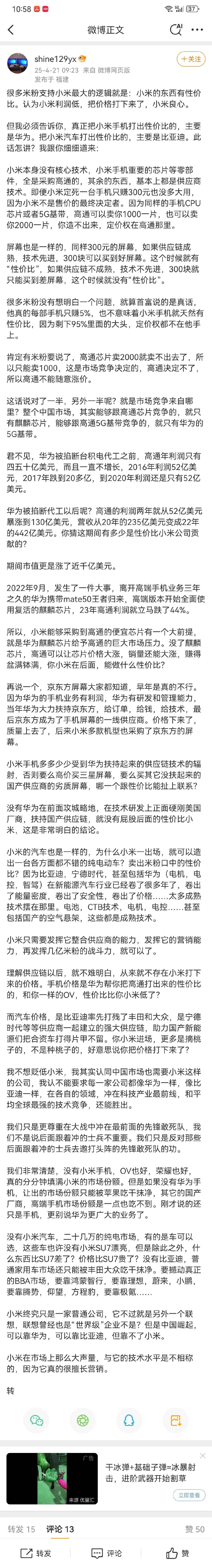 » 中国可以没有小米,但不能没有华为