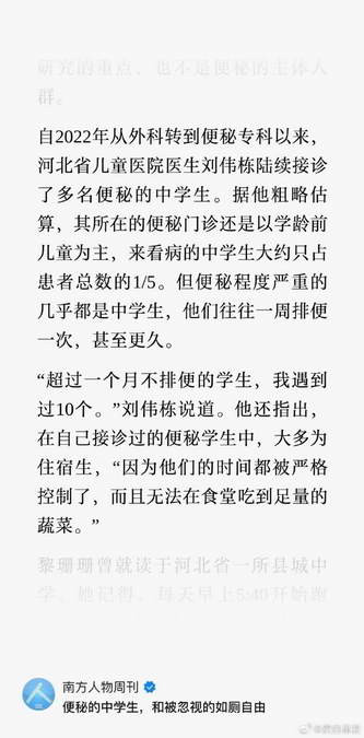 更可悲的是,一个月不拉屎的中学生,已经不是个别现象。
