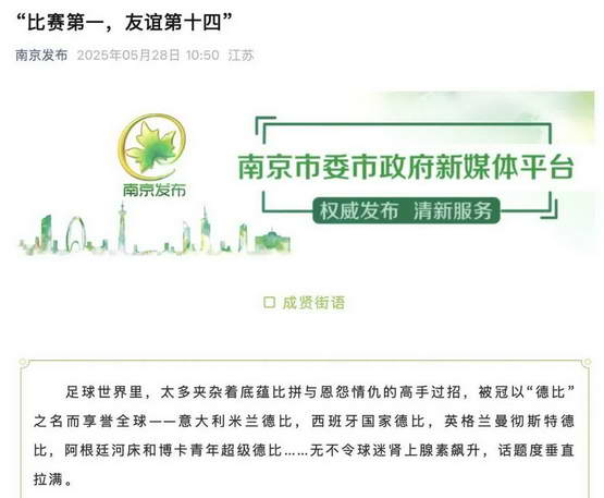 有人甚至建议,苏超联赛每年举办一次,谁赢了谁当省会,这样说不定能在不久的将来能把中国带进世界杯。