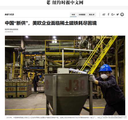 @飞天面条神教:纽约时报的新文章《中国 “断供”,美欧企业面临稀土磁铁耗尽困境》看的我汗颜,原来中国的稀土产业这么牛 X 的嘛?
