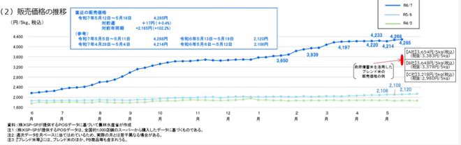 图片来源:农林水产省米の流通状況等について报告-スーパーでの販売数量?価格の推移