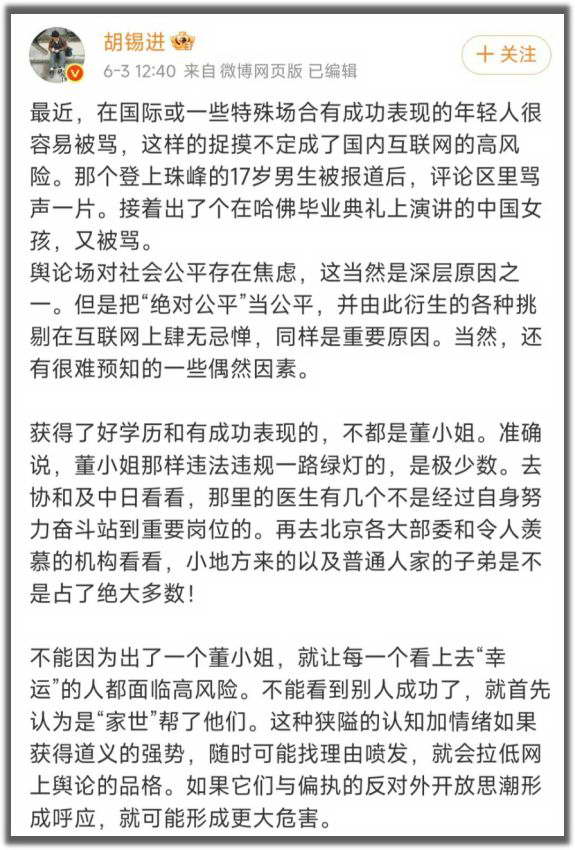 最新消息是老胡出来说话了。