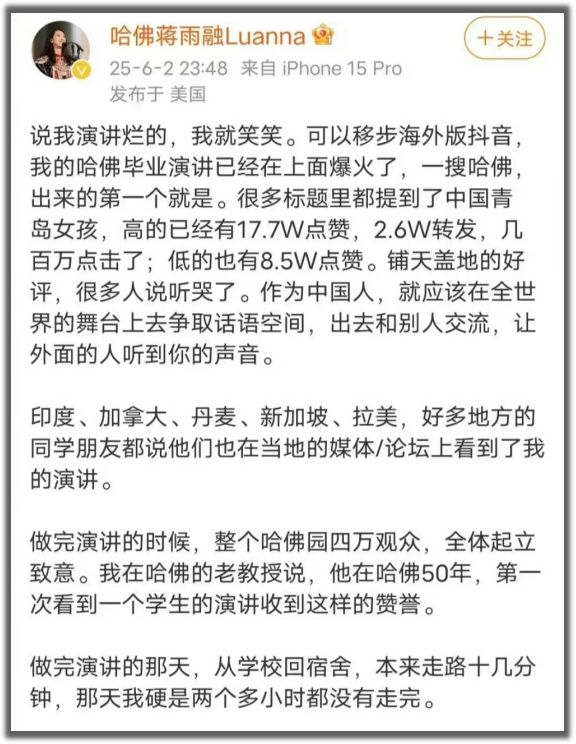 其实你重新去看哈佛蒋雨融的演讲,其实说的话都没啥毛病。