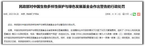 也因为擅用捐款,被民政部处罚过。