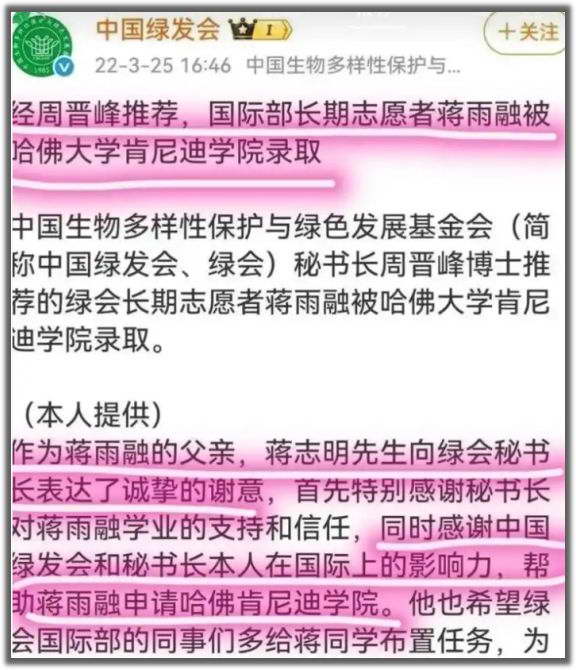 某位博主发现,这位心系人类命运的蒋小姐,其实是 “绿发会” 高管的千金。