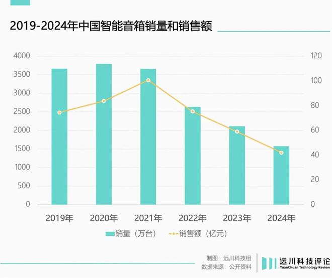 然而,智能音箱这个品类却在短暂高歌猛进后光速坠落,出货量自 2021 年起一路下滑,到 2024 年,市场规模较之高点已被抹去一半 [1]。