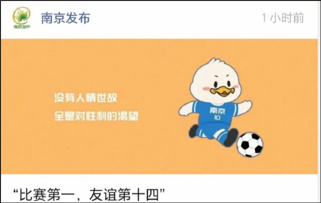 5 月 28 日南京发布在公众号上发布文章,说:“比赛第一,友谊第十四” ,从标题开始到正文都在表达一个意思: