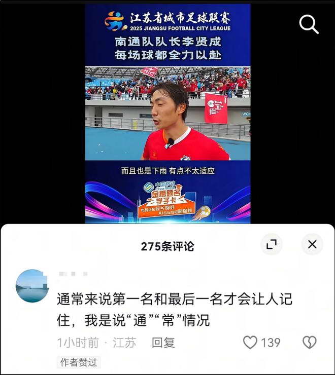 赢球后南通队员说:通常来说第一名和最后一名容易被人记住。