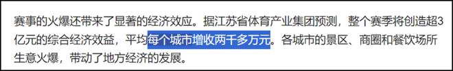 有人预测说整个赛季能创造 3 亿元以上的综合经济收益,平均每个城市增收两千多万元。