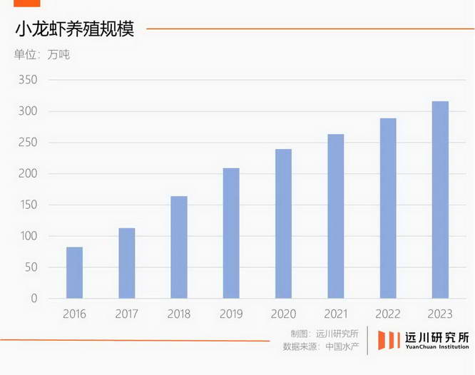 小龙虾卖的越来越便宜,原因不是大家不爱吃了,而是大家太爱吃了,推动了市场规模的扩大。过去十年,小龙虾养殖规模增长了 4 倍,激烈的竞争促成了价格下滑。