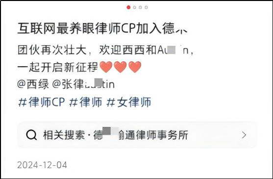 网友接着爆料她的 CP 对象,虽然有律师证,但执业不到三年,也不符合合伙人的条件。
