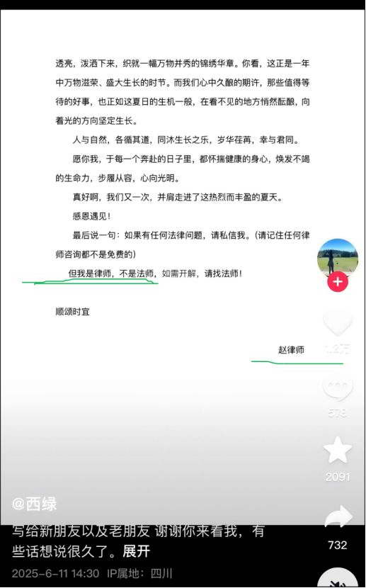 因为西律一开始就自称是律师,没有打擦边球说自己是法律爱好者。