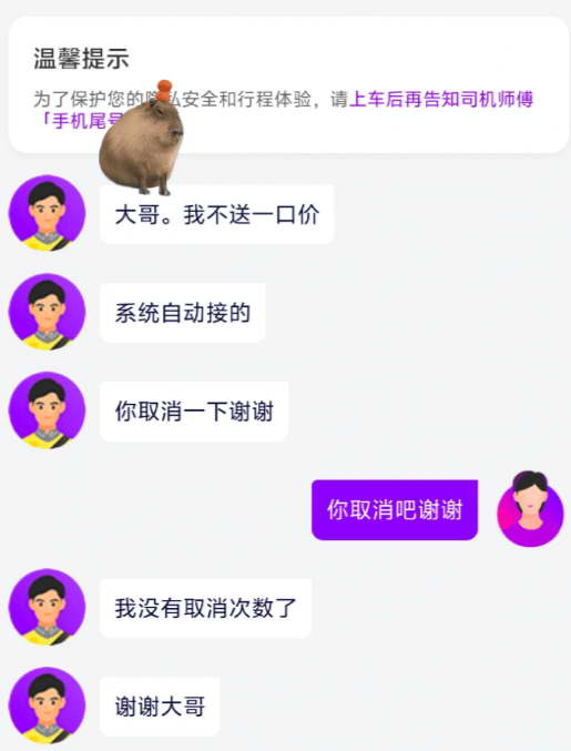 你打出一个问号,司机解释道,这是 “平台新规定” ,答对题,或对上暗号,他才能去接驾。