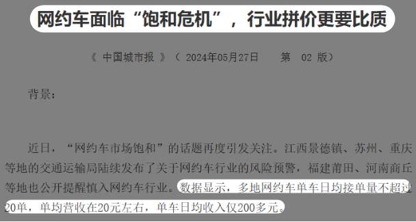原因么就是单量增长跟不上网约车增长,近几年,每年都有城市发文,预警网约车市场饱和风险,公开提醒慎入网约车行业。