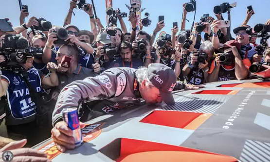 越野赛车手塞恩斯手持红牛亲吻爱车奥迪 RS Q e-Tron E2
