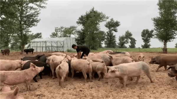 另外,沙漠里喂养的猪活动量大,肉质紧实,肌苷酸含量比普通猪肉高 6 倍,味道更香,价格比普通猪肉高不少,平均每户年收入额外增加了 3 万元。