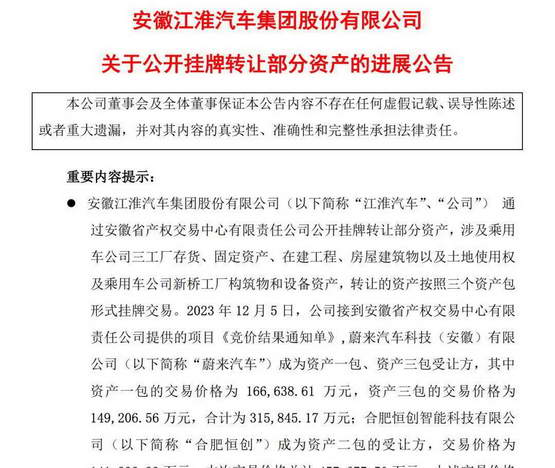 一句话概括就是,蔚来摆脱了代工,江淮又卖厂子获得现金,“我们都有光明的未来”。