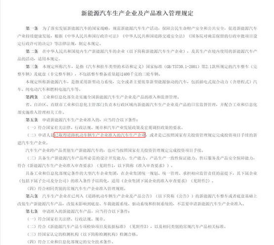就蔚来成立那时,为了防止重复建设,新能源造车资质不仅要发改委和工信部双重审批,口径更是严格,比如要么你本来就有燃油车生产资质,而且年产能要达到 10 万辆等等条件,而且对车企的设计研发、生产一致性、安全保障和售后服务都有要求。(主要还是前些年骗补的太多了,不得不防啊)