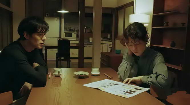 将工作带回家,加深着中年夫妻经济共同体的绑定,共同居家工作增加相处机会,看似弥补了缺失的交流。但工作连接和共同目标无法完全填补,被磨损的信任与萧条的情感,只是牵引着他们的生活继续向前。