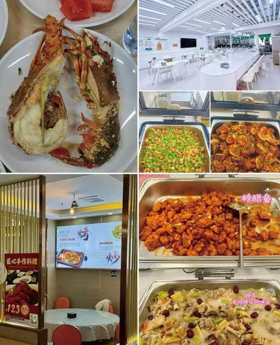 番茄炒蛋,浓郁的汤汁热乎的番茄,吃出家的味道;宫保鸡丁,恰到好处的辣,伴随着一丝甜口,品质不输川渝小馆;有的甚至具有 “国际化风情”,提供日料、韩餐和东南亚菜系;每餐配备水果和汤,确保营养均衡;不限量的饺子和馒头,让大胃王们也可以省心炫;甚至还有私密包房、咖啡区可以选择,满足个性化的用餐需要……