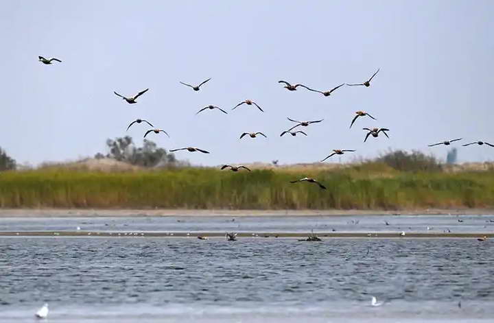 目前台特玛湖监测到的鸟类,有白鹭、赤麻鸭、鸬鹚、野鸭、红嘴鸥、灰鹤、文须雀等近 30 种鸟类。