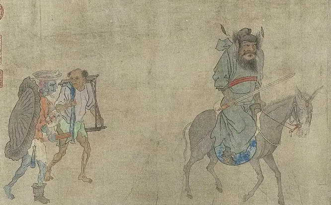 藏于台北故宫的《钟馗出猎图》(局部,传为五代南唐顾闳中所作,但有争议)