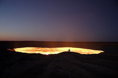 图片中这个深不见底的大洞被当地人称为“地狱之门”,位于乌兹别克斯坦一个叫做达尔瓦兹的小镇附近。
