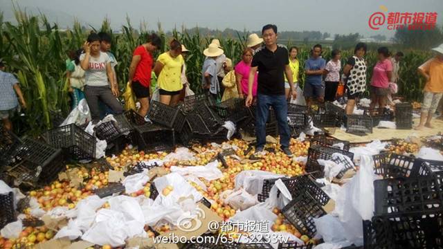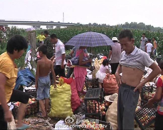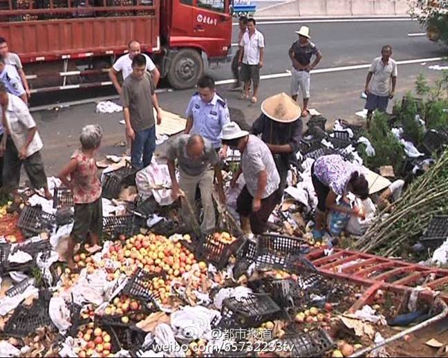 8月23日上午,辛先生驾驶的货车在焦桐高速泌阳段发生倾翻,散落在地的20吨苹果遭附近村民哄抢。