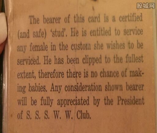 男妓证,看完我也是醉了!在已经泛黄的纸张上,写有其祖父的签名和落款日期1959年5月29日。证书内容写道:持证者可以安心做“男妓”,并且可以接待任何女性客户,因为被结扎,所以不用担心会导致顾客怀孕。持卡人如有疑问,俱乐部都将热心处理。