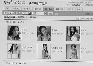 经过验证,记者发现能联系上的伴游者,大多都声称可提供色情服务,而她们在网站上标注的数千到上万元的服务价格,都是一次性交易所需的费用。如果包夜或者包天,费用还要高出很多。所谓的“伴游”一般会在酒店里进行,也有个别伴游会提供性交易场所。为了显示自己的身份,有些伴游女孩会在网站上介绍自己是在校大学生,还有人声称自己是白领、模特等身份。而伴游网不仅收取每个客户的几百上千元入会费,还通过直接介绍女孩再获取千元介绍费,伴游网站俨然成了色情交易平台。