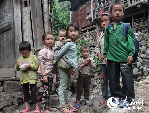 贵州罗甸县打改村,几名留守儿童放学回到村子。